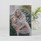 Den romantiska kalligrafbildinbjudan till mörken är perfekt för ett enkelt bröllop. Den moderna klassiska designen har finare-snurrar och vitaktiga blomningar med en elegant elegant, handskriven typografi. Anpassa med 2 förlovningars foton, en på framsidan och en på baksidan.