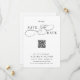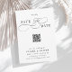 Det romantiska manuset spara datum meddelande är perfekt för ett enkelt bröllop. Den minimalistiska svarta och vita designen har elegant och romantisk, snabb kalligrafiskrift med en QR-kod. Om du vill ha en mer avancerad anpassning av den här designen klickar du på BLUE DESIGN VERKTYG ovan!