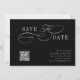 Det här romantiska manuset sparar datumet när bröllopspromemorian är perfekt för ett enkelt bröllop. Den minimalistiska svarta och vita designen har elegant och romantisk, snabb kalligrafiskrift med en QR-kod. Om du vill ha en mer avancerad anpassning av den här designen klickar du på BLUE DESIGN VERKTYG ovan!