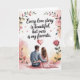 Med citatet ”Varje kärlekshistoria är vacker, men vår är min favorit” i elegant kursiv och borsttypsnitt, fångar detta drömlika kort värme, intimitet och äkta tillgivenhet.