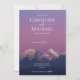 Romantisk lila solade snöberg bröllop. Romantisk bröllop-design med ett landskapsfoto av snö täckte rocky mountains. Bergarna påverkas knappt av den mjuka orangen av sol. Himlar ovanför det stora bergsområdet är färgad i sådana häpnadsväckande naturliga knutar till rosa och lila. En ljus- och övertoning av färg går långsamt från lila till djup indigo och blå. All information om produkten är helt anpassade genom att klicka på "Anpassa den här mallen". Om du vill ändra storleka på teckensnittet eller flytta runt sak kan du uppnå detta genom att klicka på "Redigera med designen verktyg". Du kan alltid kontakta mig angående designen genom att klicka på "meddelande" nedan.