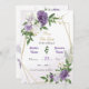 Romantisk lila och vita blommor och grönt löv botaniskt guld-geometriskt spara datuminbjudan glitter-detaljerna simuleras