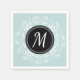 Vacker papper napkin med mint blue blommigt-andedräkt och monogram av personlig.