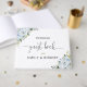Denna romantiska ljusblå blommiga bröllopsgästboksmall fångar en mjuk och elegant estetik, vackert designad med ömtåliga ljusblå blommor i par med subtil grönska för en fräsch och tidlös botanisk look. De milda blå nyanserna kombinerade med naturliga gröna accenter skapar en lugnande och sofistikerad atmosfär, perfekt för att bevara hjärtliga meddelanden från din speciella dag. Med en ren och graciös layout låter denna fullt redigerbara mall dig anpassa namn, datum och uppmaningar med lätthet. Idealisk för utskrift, blir den en meningsfull souvenir fylld med älskade minnen från din bröllopsfirande.