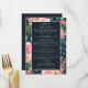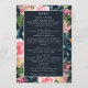 Inslag: Tvätta blommigtar för marin, och rosa med gröna och orange accenter. Klassiskt serif typsnitt med utvecklade skriptaccenter. Färg: marinblått, dammblått, royal blått, rosa, , grönt, orange, gult, vitt. Teman: modernt, traditionellt, vintage, klassisk, trädgård, botaniskt, vinter, mörk, höst. Samling: Insamlingstyp för den Rosan i Romantic Navy Blue Bröllop Collection: Menu