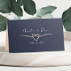 Lägg till lite elegans i bröllop med det här klassiska blått platskortet. Dess enkla, minimalistiska utformning har ett romantiskt guld-rep-hjärta och gott om utrymme för gäst namn och bordsnummer. Perfekt för att skapa en sofistikerad atmosfär vid firande!