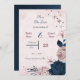 Romantisk marin blått och rosa blommor sparar datuminbjudan Informationen i glitter simuleras