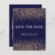 Inslag: Folien ro guld, klassisk serif typsnitt, stjärndammdesign. Färg: marinblått, ro guld, vitt. Teman: romantik, nattceremoni, modern, vismisk, lyx, glam, stjärnor, astronomi, elegant, sofistikerad. Samling: Produkttyp för insamling av startdamm från den romska flottan Ro: Spara datum
