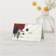 Romantisk röd och marin blåa blommor med guld bronze löv på ett marmorerat bakgrundskort