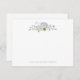 Elegant bröllop tackkort, prytt med en fantastisk mjuk blå och vit akvarellblomsterbukett med hortensia, riddarsporre och rosor.