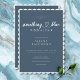 Elegans och enkelhet gör den här möhippans luncheon-inbjudan unik. En mjuk, dammig, tealblått bakgrund är i centrum på inbjudan, omgiven av en enkel vit ram. Skriptet tillför en aning spelbarhet med sitt hjärtformade mellanrum. Skapat av Farmhouse Press.