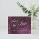 Romantiskt handskriftsskript på moody djupa vattenfärgsbakgrund för plommon lila, elegant och sofistikerade vykort för underbara bröllop spara datum för vintage bröllop, fall- eller vinterbröllop och kvällar bröllop. Visa alla matchande delar i samlingen.
