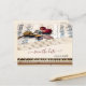 Ett original Save the Date-vykort med ro på en musik i lakan med stiliserat musik noter och piano tangentbord. Underbar för ett par kärlek-musik.