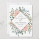 Elegant- och romantiska bröllopsinbjudningar för blommigt med dina bröllop-detaljer som är framtagna av muterade vattenfärgblommor, lush bladning i nyanser av fransk blå och grönt och en faux ro guld gräns. Baksidan återgår till en grönt färg. De bröllopsinbjudningarna i blommigten är perfekter för trädgårdsbröllop i vår, sommar eller fall.