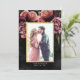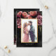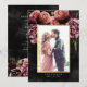 Romantiskt och moody, detta formella bröllop spara datum är perfekt för ett modernt elegant bröllop. Den moody blommigten har en naturlig bukett av rosa ros och en häpnadsväckande ranunculus med mörk grönt löv i en lyxig arrangemang på mörkens svarta vattenfärgsbakgrund. På baksidan av datumkortet finns en koordinerande blommigt på svart. All text är anpassade.