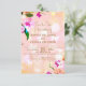 Vacker elegant blomsterbröllop Spara datum-kortdesign med orkidébukett på en persikofärgad rosa bakgrund. Texten är helt anpassningsbar.