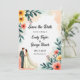 Den här blommigten med elegant vattenfärg sparar datumet inbjudan är perfekt för ett modernt bröllop. Den romantiska designen har en elegant vattenfärgsbild i ram med en blommigt med brud- och groombild och svart kalligrafi på vit bakgrund.