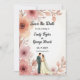 Den här blommigten med elegant vattenfärg sparar datumet inbjudan är perfekt för ett modernt bröllop. Den romantiska designen har en elegant vattenfärgsbild i ram med en blommigt med brud- och groombild och svart kalligrafi på vit bakgrund.