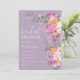Romantisk pastel-vild blommar vår sommar-möhippa med blommor från söt vild land i rosa, persika, lila, lavender, grönt löv m.m., med en borstad skripttypografi på en elegant som kan redigeras på mjuk lila av lavender.