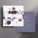 Elegant bröllop sparar datuminbjudan med en vattenfärgsbukett av plommonernas lila, indigoblått och oliv grönt blommor med anpassningsbar på baksidan. Om du vill ha en mer avancerad anpassning av den här designen klickar du på UTTON VERKTYG. Matchande objekt är också tillgängliga.