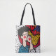 En levande och lekfull popkonsillustration som visar ett par i kärlek. Konsten har fet mönster, ljusa färger och vismisk hjärtan, och betonar romantik och kärlek. Perfekt för alla hjärtans dagskonstruktioner, hälsningskort eller romantiska projekt.