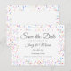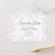 ROMANTISK REGNBÅGEKONFETTI SAVE THE DATE-KORT. Personifiera med dina namn och detaljer i en vacker falsk silvertypsnitt på en delikat regnbågekonfetti-bakgrund. Designad av Thisisnotme©