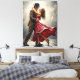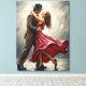 Ge passion och poetisk charm till ditt utrymme med detta fantastiska canvastryck som visar ett par som dansar i regnet. Herren, klädd i vintagebrunt med en klassisk svart hatt, håller sin partner i en fängslande omfamning. Hon, virvlande i en livfull röd klänning, utstrålar grace och rörelse, medan regndroppar accentuerar magin i deras ögonblick.