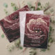 Meddela din speciella dag i en hisnande dramatisk stil med detta fantastiska romantiska röda ros-burgunderfärgade "Save the Date"-kort - en lyxig design med en djup burgunderfärgad akvarellros-swirlande bakgrund med eleganta gyllene ornamentala accenter, perfekt koordinerad med din kompletta AK Aurora Romantiska Röda Ros bröllopspappersutrustning.
