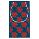En romantisk medelstor presentsäck som du kan anpassa, med ett helt mönster i Röd ros, på en djup blå bakgrund som du enkelt kan ändra om du vill. Del av Judy Adamsons insamling av Hearts och Ro.