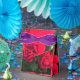 Romantisk röd ros gammal trädgård. Röda rosor rosenkrans. Storslagna röda rosor blommar hela sommaren. Vacker present för blomsterälskare.