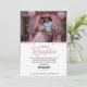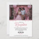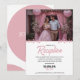 Fira din speciella dag med vårt eleganta rosa blomsterbröllopsinbjudan för mottagningen. Denna moderna design har en vacker, välvd platshållare för foto där du kan visa upp porträttet av det älskade paret, inramat av mjuk rosa draperi och romantiska blomsterarrangemang.