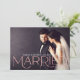 Meddela din make/maka med värme och glamour med hjälp av detta romantiska rosa guld serif-foto bröllopsmeddelande. Överstor metallisk rosa guld typografi stavar "Gifta" över ditt fullblodiga foto, med namn och fastställt datum elegant visade ovan. Baksidan innehåller ett andra foto och ett anpassningsbart brev om din privata ceremoni. Byt ut båda foton och redigera all text för att skapa den perfekta minnesgåvan.