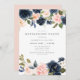 Romantisk Rosa & Marinblå Blush Blommig Pensioneri Inbjudningar
