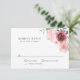 Romantisk och vacker, den här bröllopet OSA har en vattenfärgsbukett med blommigt i rosa, brinnande och avslutande grej utmed ett övre hörn. Det ser både enkelt ut och elegant. Svarskortet i bröllop är ett fantastiskt val för vår eller sommaren bröllop, trädgårdsbröllop, bröllop, bröllop som hålls på offentliga platser och annat. Anpassa textmallen med det svarsdatum som krävs.