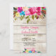 Romantic Vår Rosa Watercolor Blommigt | Inbjudan till typografi-bröllop. Bohemiskt shock rosa, djup rosa, gult, ljusblått, lila vattenfärgsmålat ro, utformning av botaniskt blommigt arrangemangt bröllop med grönt löv och fjädrar på ljusbrun rustik träbakgrund. Med en handskriven typografi av eleganten utformar du bruden och rummets namn. Perfekten väljer vår och sommar-bröllop. #3338a Om du behöver hjälp eller matchande artiklar, skriva till mig.