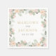 Mjuka rosenskiftande och persikafärgade vattenfärgblommor med salvia gröna blad skapar en frodig blomsterkant som inramar parets monogramnamn och datum i elegant guld och svart serifstil på dessa romantiska bröllopsservetter. Den fräscha, trädgårdsinspirerade paletten gör en vacker accent för en vår- eller sommarbröllopsfest, cocktailtimme eller förlovningsfest.