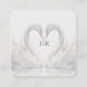 Svantar pryder fram- och baksidan av dessa bröllops-RSVP-kort och ger en romantisk estetik. Med mjuka nyanser av vit och mörk silverfärg. Lägg bara till detaljer om ert bröllopsevenemang. Ni kan också använda QR-koden för er RSVP, webbplats, bröllopspresentlista med mera. Perfekt för speciella tillfällen. Använd mallen för att skapa er egen romantiska svan bröllop QR-kod RSVP-bifogad.