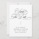 Det romantiska manuset spara datum meddelande är perfekt för ett enkelt bröllop. Den minimalistiska svarta och vita designen har elegant och romantisk kalligrafiskrift med en QR-kod på baksidan. Om du vill ha en mer avancerad anpassning av den här designen klickar du på BLUE DESIGN VERKTYG ovan!