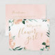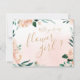 Modern "Vill du vara min blomsterflicka?"-text omgiven av akvarellpersika blommor och botanisk grönska, elegant och romantisk, perfekt för modern bröllop, romantisk bröllop och botanisk trädgårdsbröllop under våren och sommaren.
