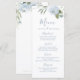 Romantisk trädgårdsdamm, blå blommigt bröllop meny