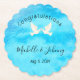 Romantiskt set av pappersunderlägg. Två duvor med rosa hjärta på underbar blå bakgrund. Redigerbar text och bild.