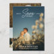 Dubblan sparar datumkortet med en romantisk typografisk design som är fokuserad på bröllop-datumet på ett foto av paret lycklig. Lägg till ytterligare tre foton på baksidan i en ren kollage. Spara personligen för datummallskortet med foton.