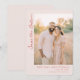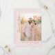 Denna bröllops-karta för att spara datum har en romantisk och klassisk design med en rektangulär layout uppdelad i två sektioner. Den vänstra sidan visar ett varmt, gyllene utomhusfoto, medan den högra sidan har elegant kursiv och serif-typografi i djuprött och dämpade rödbruna nyanser. Subtila blommönster lägger till struktur i bakgrunden och förstärker den övergripande känslan av värme och förväntan. Perfekt för formella tillfällen kombinerar denna design digital illustration med fotografiska element och skapar en modern men tidlös känsla som är både inbjudande och sofistikerad.