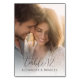 Det här bröllopsbordskortet har ett varmt och intimt fotografi av två individer som delar en öm moment, badat i ett mjukt gyllene ljus som skapar en romantisk stämning. Designen använder en harmonisk färgpalett i beige, guld och ljusbruna toner för att framkalla en mysig och tillgiven stämning. Elegant kursiv stil tillkännager bordnumret, medan ren sans-serif-typografi ger tydlighet åt namn, vilket gör det perfekt för att anpassa din evenemangssittning. Den övergripande layouten betonar enkelhet och emotionell resonans, perfekt för att fira kärlek och gemenskap vid ditt speciella tillfälle.