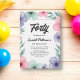 Den här inbjudan till blommigt med vattenfärg i elegant är perfekt för en modern födelsedag. Den romantiska designen har en elegant vattenfärgsfärgad blommigt ram med svart kalligrafi på vit bakgrund.