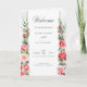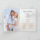 Fina kolumner med elegant vattenfärg rosa ros och grönt på en subtil pastellbakgrund med vattenfärg och mittetikett med guld gräns. Innehåller kalligrafisk textgrafik i anpassningsbarnas skriptteckensnitt (eller ta bort och anpassa i designredigeraren) med redigerbar text fält för din ceremoniinformation och deltagare i bröllop. Inuti finns också en valfri fotomall.