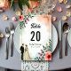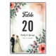Det elegant vattenfärgen blommigt bröllop bordsnummer är perfekt för ett modernt bröllop. Den romantiska designen har en vattenfärgsfärgad elegant ram med en blommigt- och trimbild och svart kalligrafi på vit bakgrund.