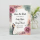 Den här blommigten med elegant vattenfärg sparar datumet inbjudan är perfekt för ett modernt bröllop. Den romantiska designen har en elegant vattenfärgsbild i ram med en blommigt med brud- och groombild och svart kalligrafi på vit bakgrund.