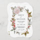 Denna underbart eleganta och unika vinterbröllopsinbjudan designades speciellt för bröllop under julhelgen och vintermånaderna. Romantiska rosa rosor blandas med vackra städsegröna växter och jullyr med röda bär för att bilda en perfekt vacker kombination. Den ovala ramen runt din text och den hackade kortformen bidrar till den smakfulla designen. Anpassa textmallen med dina bröllopsdetaljer.