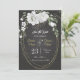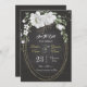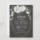 Romantiska vita blommor och grönt löv botaniska ovala geometriska ram svart spara datuminbjudan. glitter-detaljerna simuleras
